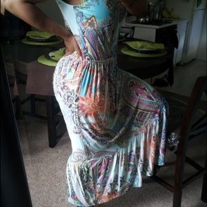 Beautiful muti-colored/stones maxi dress with chain neckline by S-12