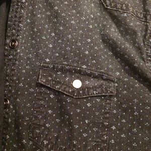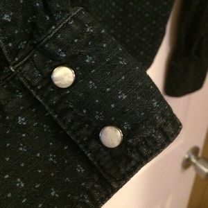 Navy button up with light blue pattern and pearl buttons, like new