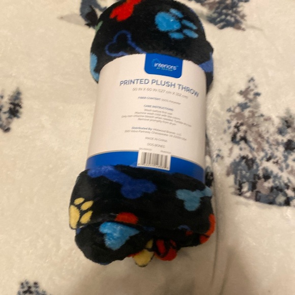 New with tags printed plush throw doggy paw prints, and dog bones interiors is the brand