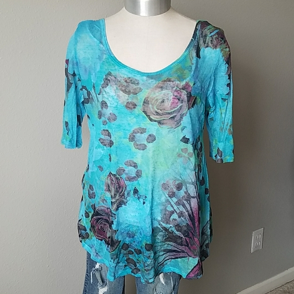 NWT Teal floral and butterfly print top w/ a criss cross back detail. I think top can be worn either way possibly. 100% poly machine wash & dry flat.