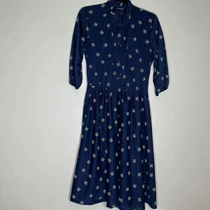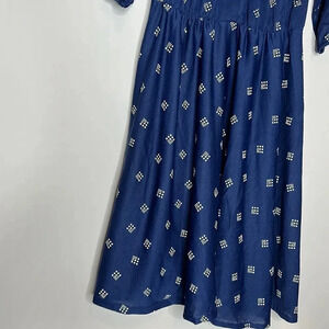 Printed Blue Long Sleeve Dress