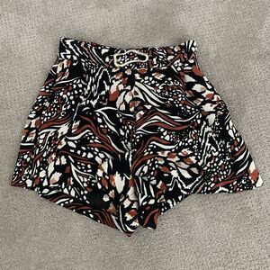 Printed high waisted belted shorts