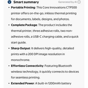 Core innovation’s mini wireless Bluetooth printer. Used once. Comes with 4 rolls of unopened paper.