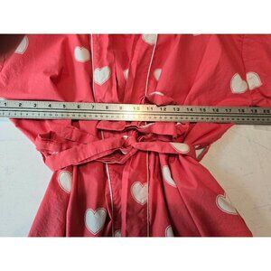 Lightweight and breathable, this pink robe features a charming heart pattern, kimono-style design, and a comfy fit with a waist tie closure.