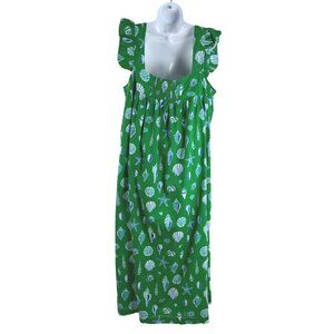 Printfresh Shoreline Dress 2X Green Blue Seashells Ruffle Organic Cotton NWT DR-1783