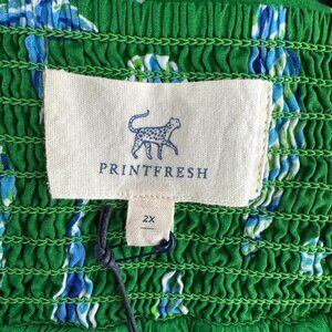 Printfresh Shoreline Dress 2X Green Blue Seashells Ruffle NWT DR-1783