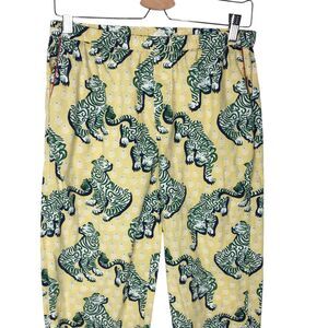 Printfresh Tiger Queen Pajama Pants XS Yelllow Green Pockets