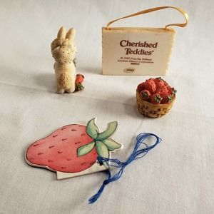 Priscilla Hillman 1995 Baby Bunny Bonnet Strawberry Set Decor Ceramic 4 Piece