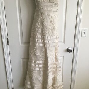 Ivory Size 12 wedding gown with no alterations. Cleaned and preserved. Will take reasonable offers.