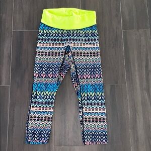 Prism Sport Aztec Printed Capri Leggings Neon Trim