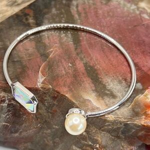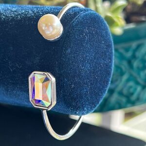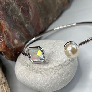 Prism Open Cuff Pearl Crystal 925 Silver Bracelet