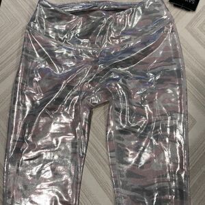 PrismSport pink and silver camouflage leggings. 7/8 length. Constructed with no center seam. Made of polyester and spandex. NWT. Inseam 23”.