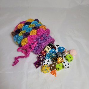 Inside is crocheted tight to avoid any holes for dice to slip through. Comes with drawstring closure.