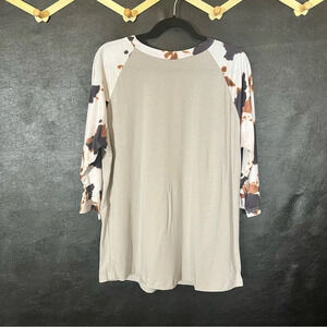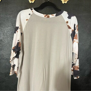 Prissy Jane Gray Cow Print Raglan Tee Size Large