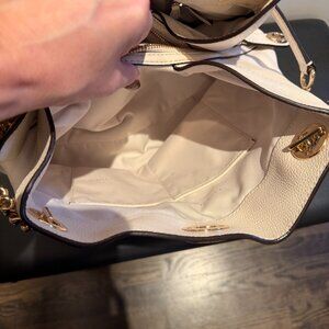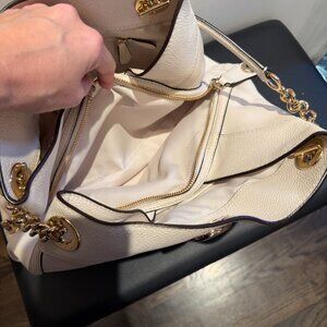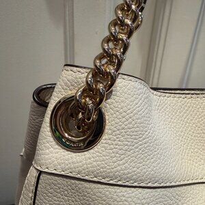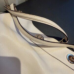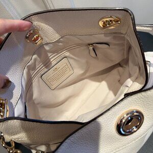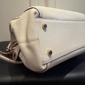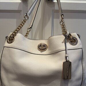 Pristine COACH White Ivory Pebbled Leather Turnlock Edie Handbag