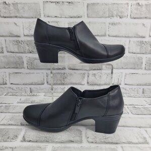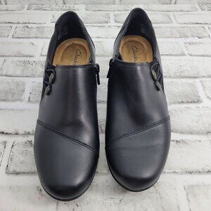 Pristine Clarks Emslie Warren Button Side Ankle Booties Black Leather Size 8