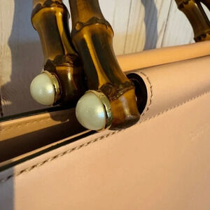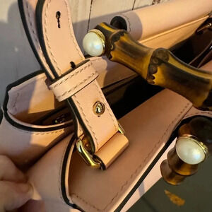 Pristine Gucci Bamboo Top Handle Nymphaea Pink Leather Bag Tote with Strap