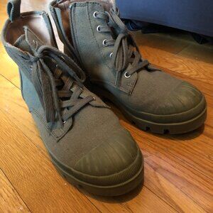 Pristine Olive Canvas Lace-Up/Zipper Chelsea Boots