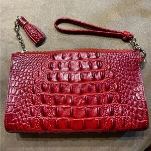 Pristine like new Brahmin Red Crocodile Embossed Leather Wristlet