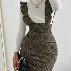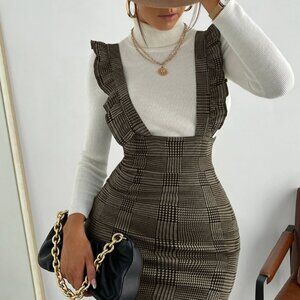 Privé Plaid Ruffle Trim Overall Bodycon Dress