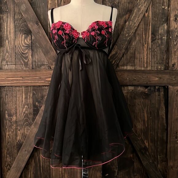 Priva Te Luxuries babydoll embroidered roses lingerie Medium