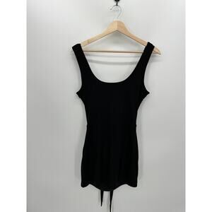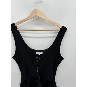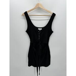 Privacy Please Dress Women Black Button Front Cut Out Tie Front Mini Size Large