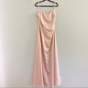 Privacy Please Elm Satin Maxi Dress Gown Slit Pink XS NWT