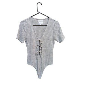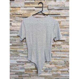Privacy Please Gray Ribbed Knit Short Sleeve Bodysuit Women's Medium
