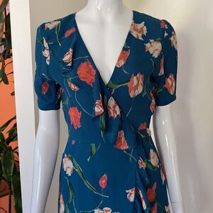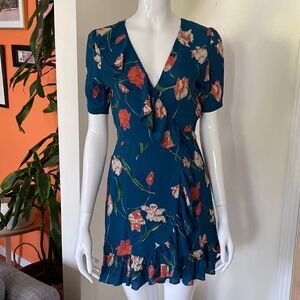 Privacy Please June Teal Floral Ruffle Mini Wrap Dress Size Small