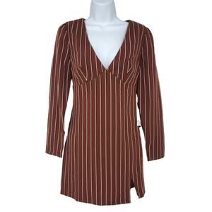 Privacy Please Long Sleeve VNeck Pinstripe Leg Slit Curtis Mini Dress Size Small