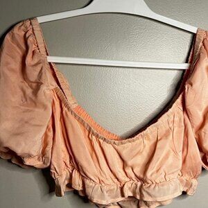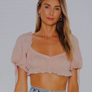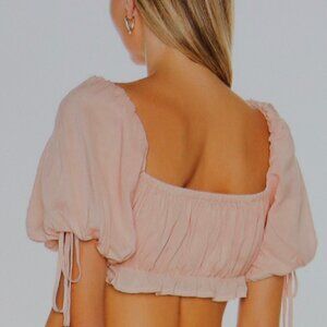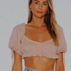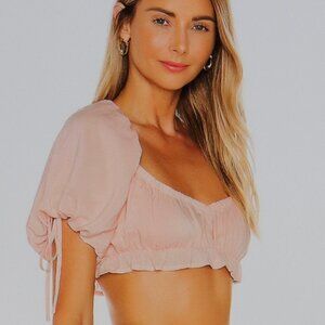 100% rayon. Dry clean only. Elasticized neckline and hem. Puffed sleeves. Drawstring cuffs with tie accents. Ruffle trim. Imported. Revolve Style No. PRIP-WS705. Manufacturer Style No. PPS493 U20.