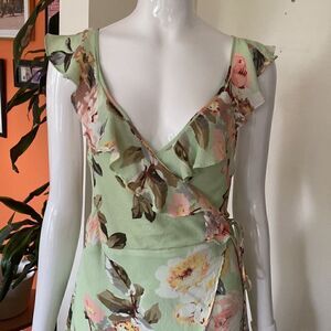 Privacy Please Mint Light Green Floral Wrap Ruffle Hi Low Dress Size XS