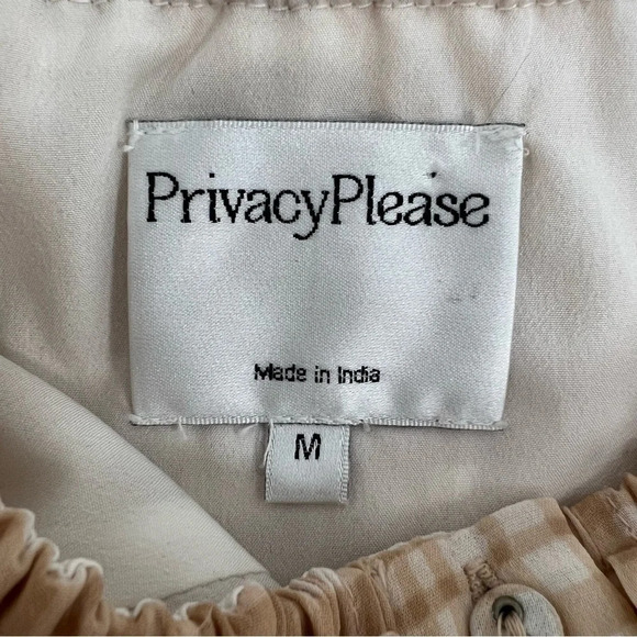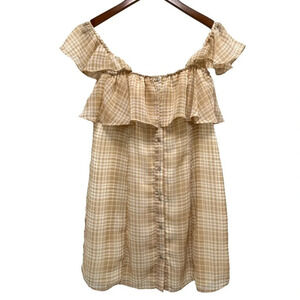 Privacy Please Norval Plaid Ruffle Off-Shoulder Mini Dress Norval in Beige Tan Women’s size M