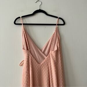 In good preowned condition. Sold at Revolve. Peach pink textured fabric. Slit in the skirt.