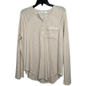Privacy Please Revolve Brigitte Oatmeal Waffle Knit Long Sleeve Top Size XXS