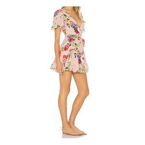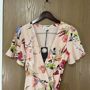 Privacy Please Revolve Finlay Mini Wrap Dress Nude Amy Floral Size S New V-Neck