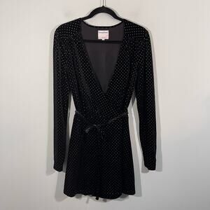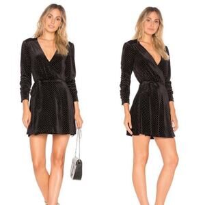 Privacy Please Revolve Women's Black Velour Gold Dots Wrap Dress Size S
