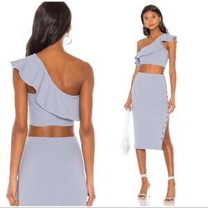NEW Privacy Please Waverly One Shoulder Crop Top Ruffle Blue