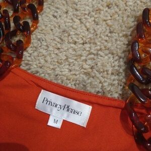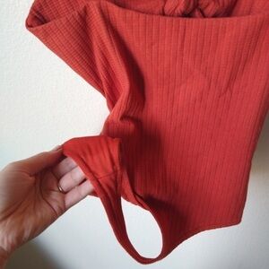 Privacy Please Women’s Ribbed Cutout Bodysuit Red Size M One Piece Chain Strap
