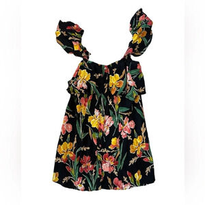 Flirty and feminine, this Privacy Please Norval mini dress features an off-the-shoulder neckline, button-front closure, and vibrant floral print on a black background. Short puff sleeves add a romantic touch, and the flowy silhouette makes it perfect for warm weather occasions. Excellent like-new condition.