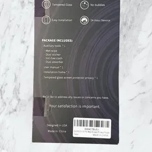Protect your phone with the Privacy Screen Protector. This black tempered glass offers 9H hardness and scratch resistance, ensuring your screen stays pristine. Enjoy anti-fingerprint technology and ultra-clear visibility.
