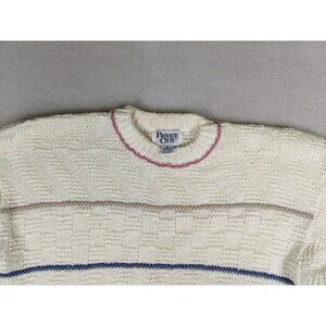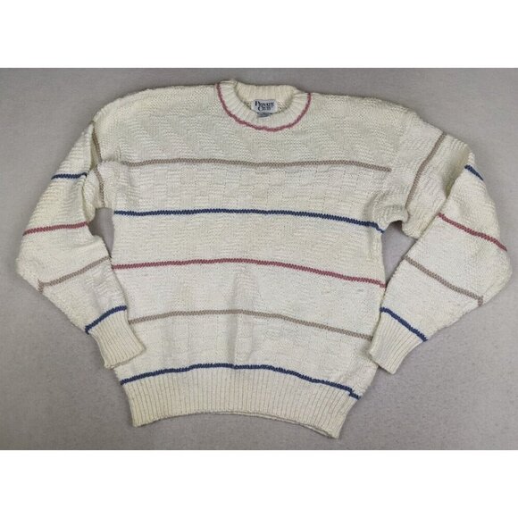 Private Club Vintage Men's Sweater White Striped Crew Neck Pullover Size XL