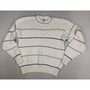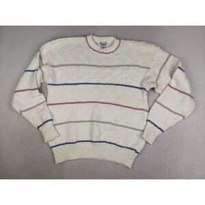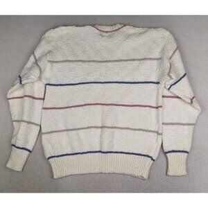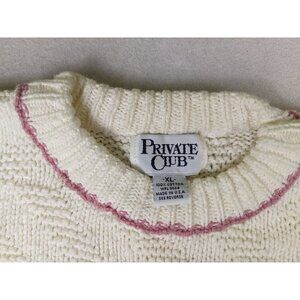 Private Club Vintage Men's Sweater White Striped Crew Neck Pullover Size XL