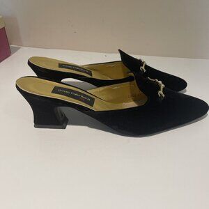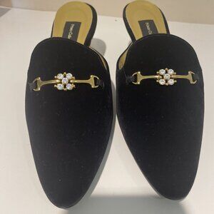 Private Collection Velvet Mules Shoes Heels Women's 9B Black Rhinestones NIB