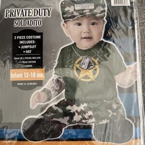 Private Duty Military Halloween Costume, Sz Baby 12-18 Month 2 pc: jumpsuit, hat