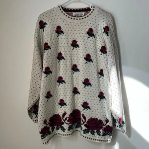 Private Eyes Roses Knit Sweater. Fits like a L / Large / XL / Extra Large. For me feels like a XL - I am 5ft 2 in and about 150 lbs. Gently used. Machine washable.