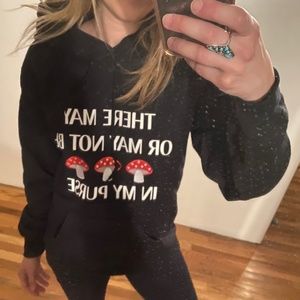 ๐ Private Party black shrooms in my purse hoodie sweatshirt w/ mushroom patches