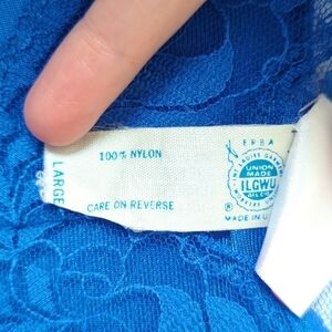 VTG and straight out of the 80s - This beautiful dainty lingerie top was made in the USA to feature a sleeveless silhouette with adjustable spaghetti straps, a v-neck, and a floral lace trim. It is cropped in length. It is royal blue in color. It is silky and soft. Very comfortable, breathable, and lightweight making it perfect for Spring and Summer! Classic, simple, and nostalgic! Very rare and union made! High quality!