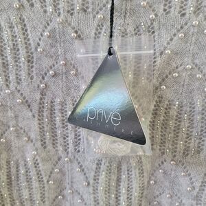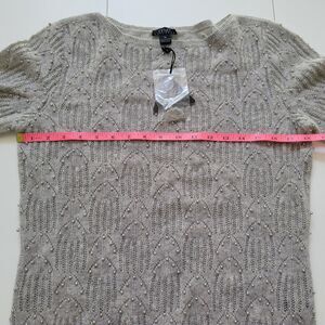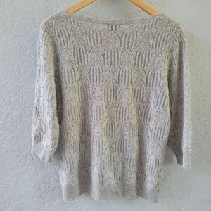 Prive 100% Cashmere Sweater Gray Lace Knit Faux Pearl Beaded Detail 3/4 Sleeve M