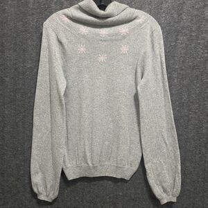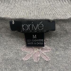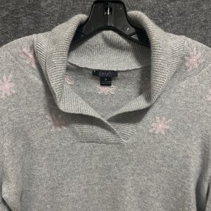 Prive Cashmere Sweater Womens M Gray Pink Floral Shawl Collar Preppy Minimalist